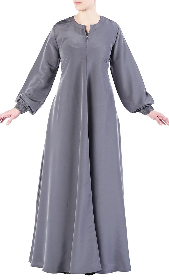 Basic Puffed Sleeves Asymmetrical Abaya Dress