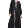 Featuring a beautiful and elegant modest wear full length abaya dress in rayon fabric adorned with zipper closure placket at the centre front and bell shaped sleeves. It is accentuated with multiple pleated panels around the flared bottom skirt. It is slightly fitted around the waist and on the elbows giving a contemporary and modern look to an ensemble perfect to be worn for casual ocassions.
