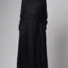 Featuring a casual fully covered muslimah abaya dress in polyester base with princess seam silhouette and pleated flared panels all over the bottom skirt. It has an elegant gathers detailing at the edges of sleeeves. Its the most basic and very comfortable everyday wear abaya dress.