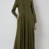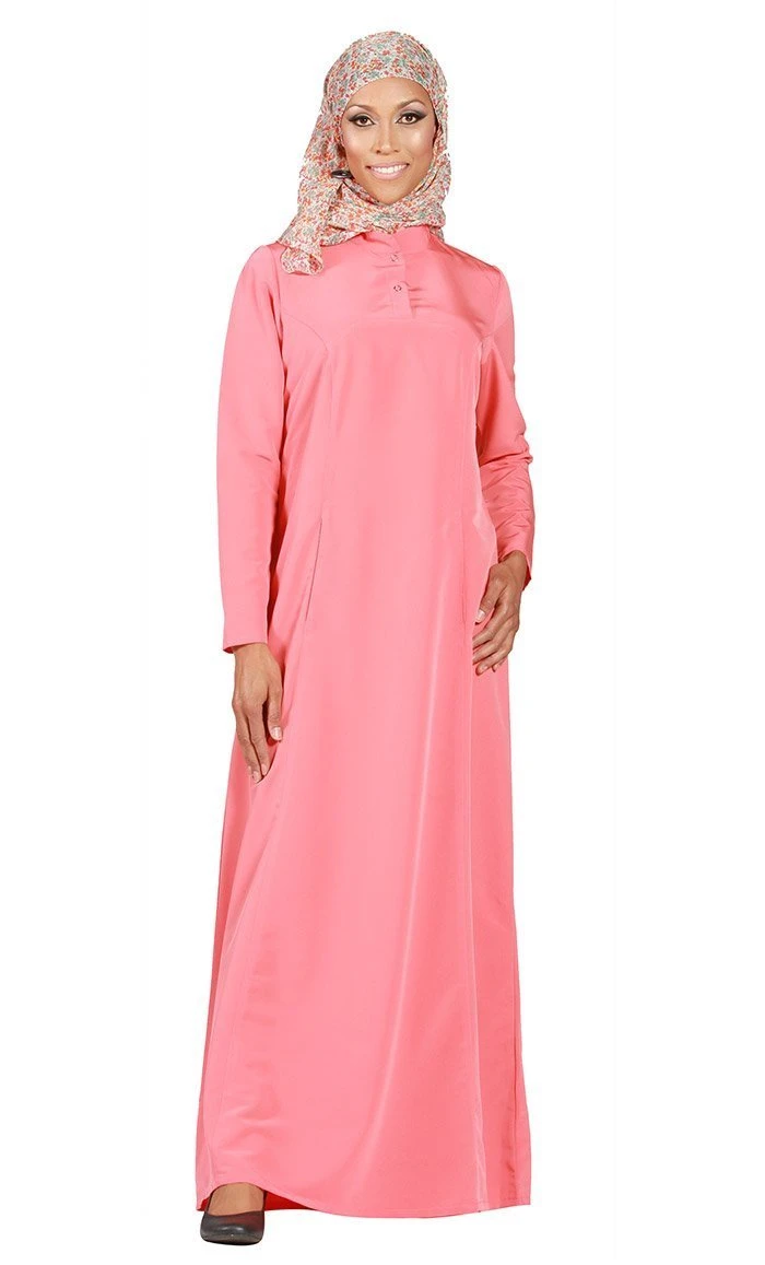 Featuring a causal fully covered A line abaya dress in kashibo fabric with twined buttons closure detailing at the centre of neckline and pockets on both sides. Its a very comfortable long full sleeves ensemble perfect to be worn on daily basis.