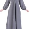 Featuring a beautiful ethnic A line arabian abaya dress with contrast color floral embroidery on the front and sleeves. It has bell shaped long sleeves that gives vintage touch to an ensemble perfect for both formal and informal ocassions.