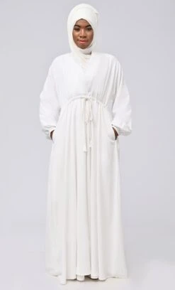 It have a V-neck, full sleeves, dori on waist included inner and hijab with pockets