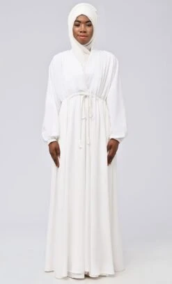 It have a V-neck, full sleeves, dori on waist included inner and hijab with pockets