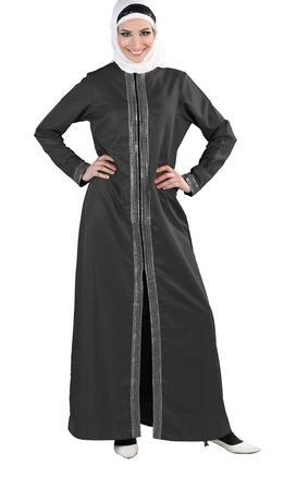 Featuring a traditional modest wear muslimah abaya dress in kashibo fabric adorned with silver sequins embellished panels at the centre front and edges of sleeves. It has an A line silhouette with beautiful look to an ensemble perfect to be worn for formal ocassions.