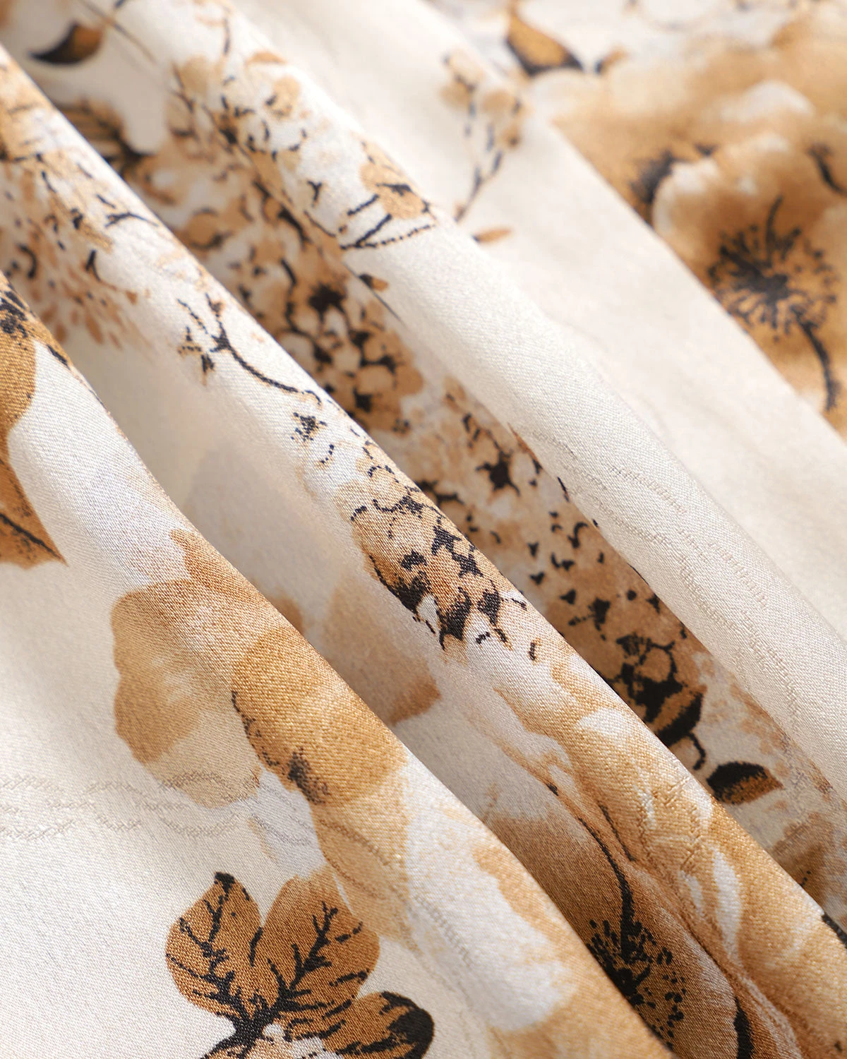This floral slit dress is made of Polyester. Polyester is an artificial fiber that feels soft, looks lustrous, and dries fast. It’s also durable, with good resistance to wrinkles, stains, and sunlight.