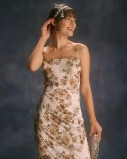 The floral pattern is the highlight of this cami dress, bright enough to be eye-catching. Coupled with the adjustable strap design, it is both convenient and sexy. Plus, the slit design adds a little bit of design, while the high-waisted and slim-fit design gives a good display of women’s perfect figures. It suits various important occasions, helping you be the focus among the crowds.