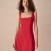 Crafted from luxurious satin, this mini dress features a flattering boat neckline that elegantly frames the collarbones. The highlight of the dress is its charming bowknot detail, adding a touch of femininity and grace.