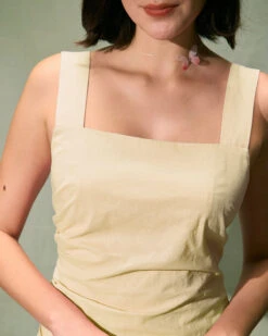 This Sleeveless Mini Dress is made of Polyester. Polyester is an artificial fiber that feels soft, looks lustrous, and dries fast. It’s also durable, with good resistance to wrinkles, stains, and sunlight.