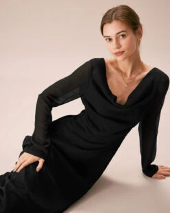 The Black Cowl Neck Long Sleeve Maxi Dress