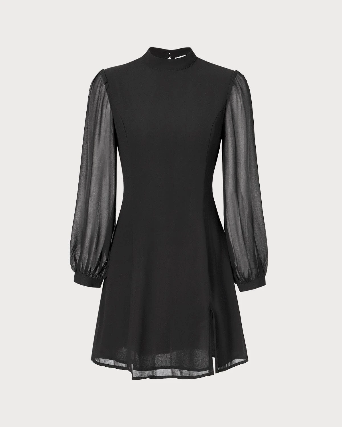The Black Stand Collar Sheer Slit Mini Dress