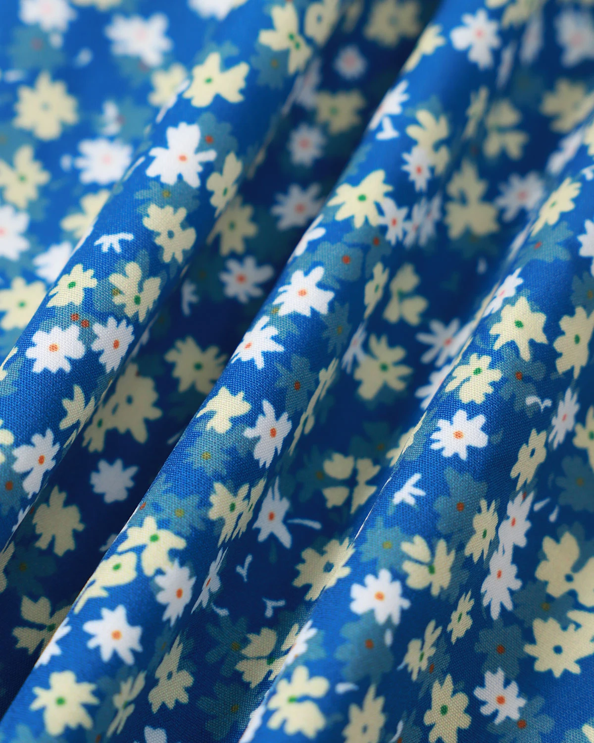 Featuring a delicate floral pattern set against a vibrant blue backdrop, this floral dress is designed to make a statement. The frill trim adds a touch of femininity and movement, while the midi length offers a versatile and flattering silhouette suitable for various occasions.