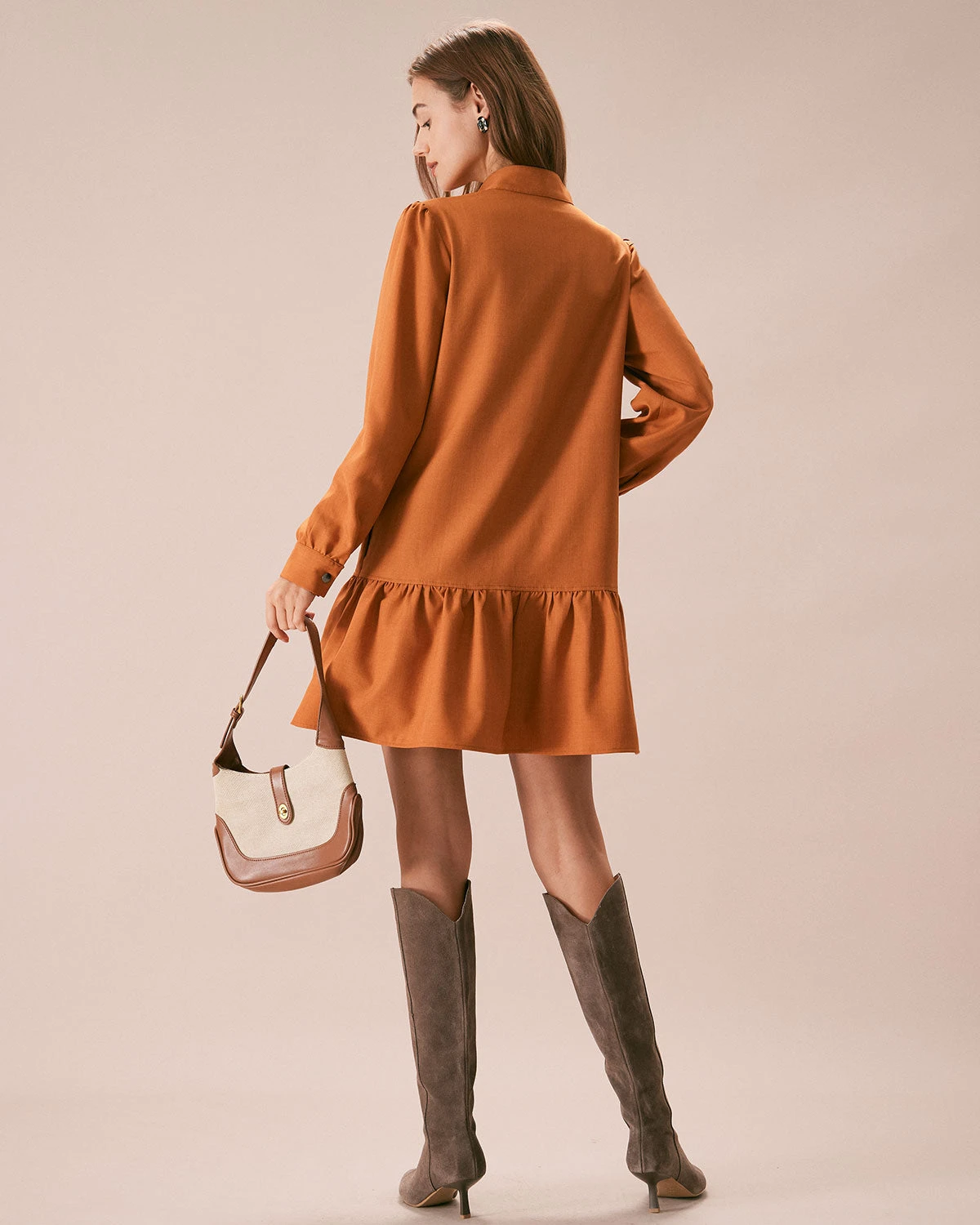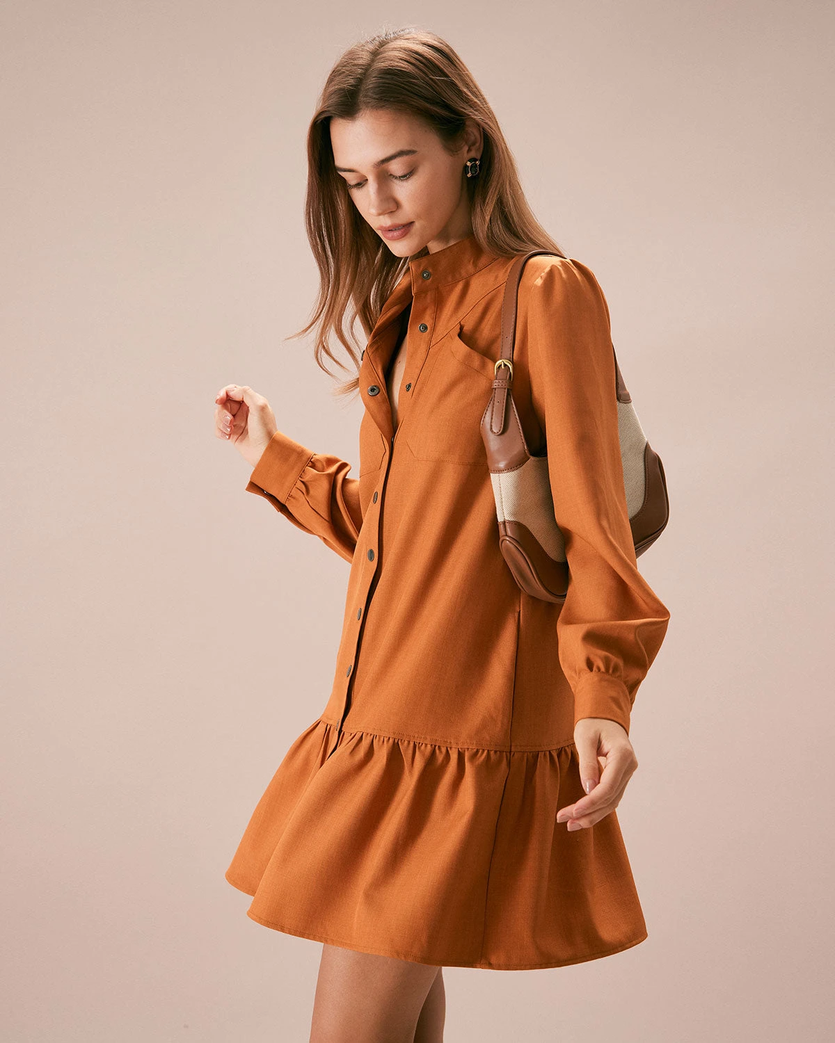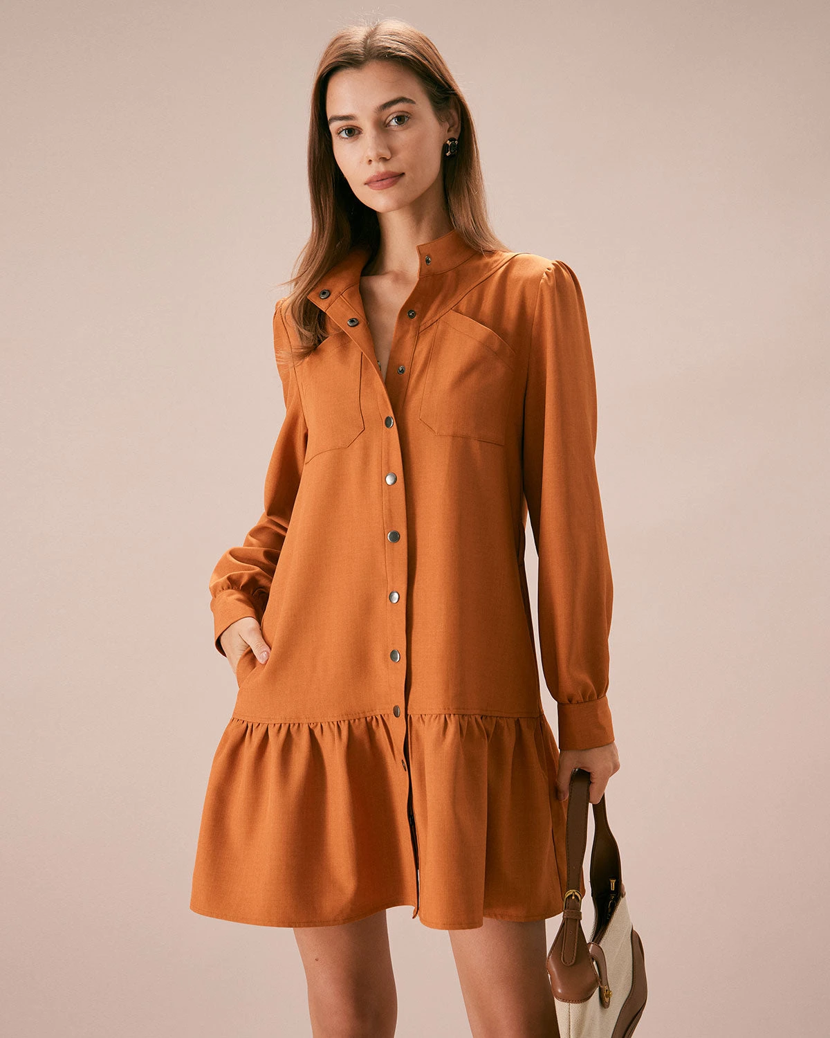 This Button Mini Dress is a stunning and elegant dress that is perfect for any occasion. The mock neck, slim fit and A-Line deisgn adds a touch of sophistication to the dress, while the ruffle, button and pockets deisgn add a unique and eye-catching element. The natural waisted and slim fit make it comfortable and easy to wear, while also creating a flattering silhouette that accentuates the figure.