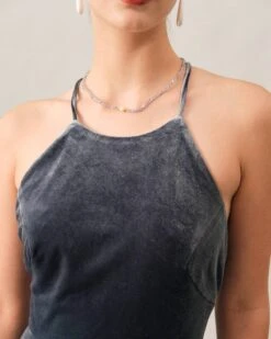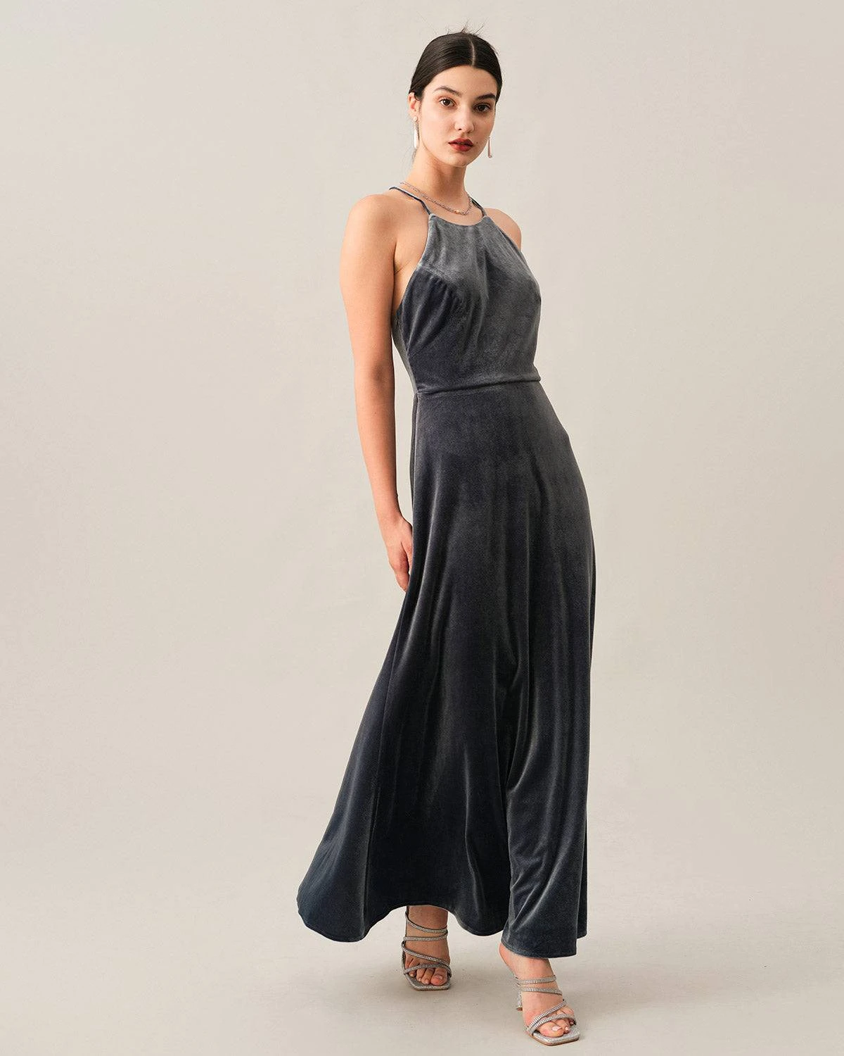 This maxi dress is designed for prom/party, sexy yet graceful. Featuring solid color and velvet fabric, it looks textured and feels soft, cozy, and fashionable enough to be worn at prom/party. Crucially, the criss-cross backless design adds enough sense of sexy to it, while the high-waisted and slim-fit design offers women a perfect figure ratio. It combines fashion and coziness well.