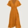 This Satin Midi Dress is made of Polyester and Spandex. Polyester is an artificial fiber that feels soft, looks lustrous, and dries fast. It’s also durable, with good resistance to wrinkles, stains, and sunlight. Spandex is lightweight and comfortable to wear, resistant to sweat, has excellent elasticity, and is durable and robust.