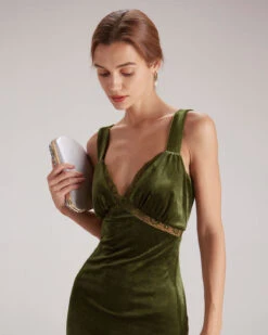 Be the first to review “The Green V Neck Cutout Velvet Midi Dress” Cancel reply