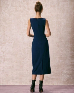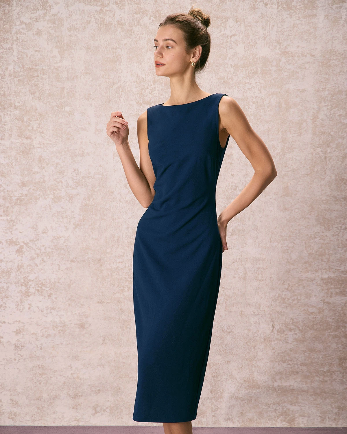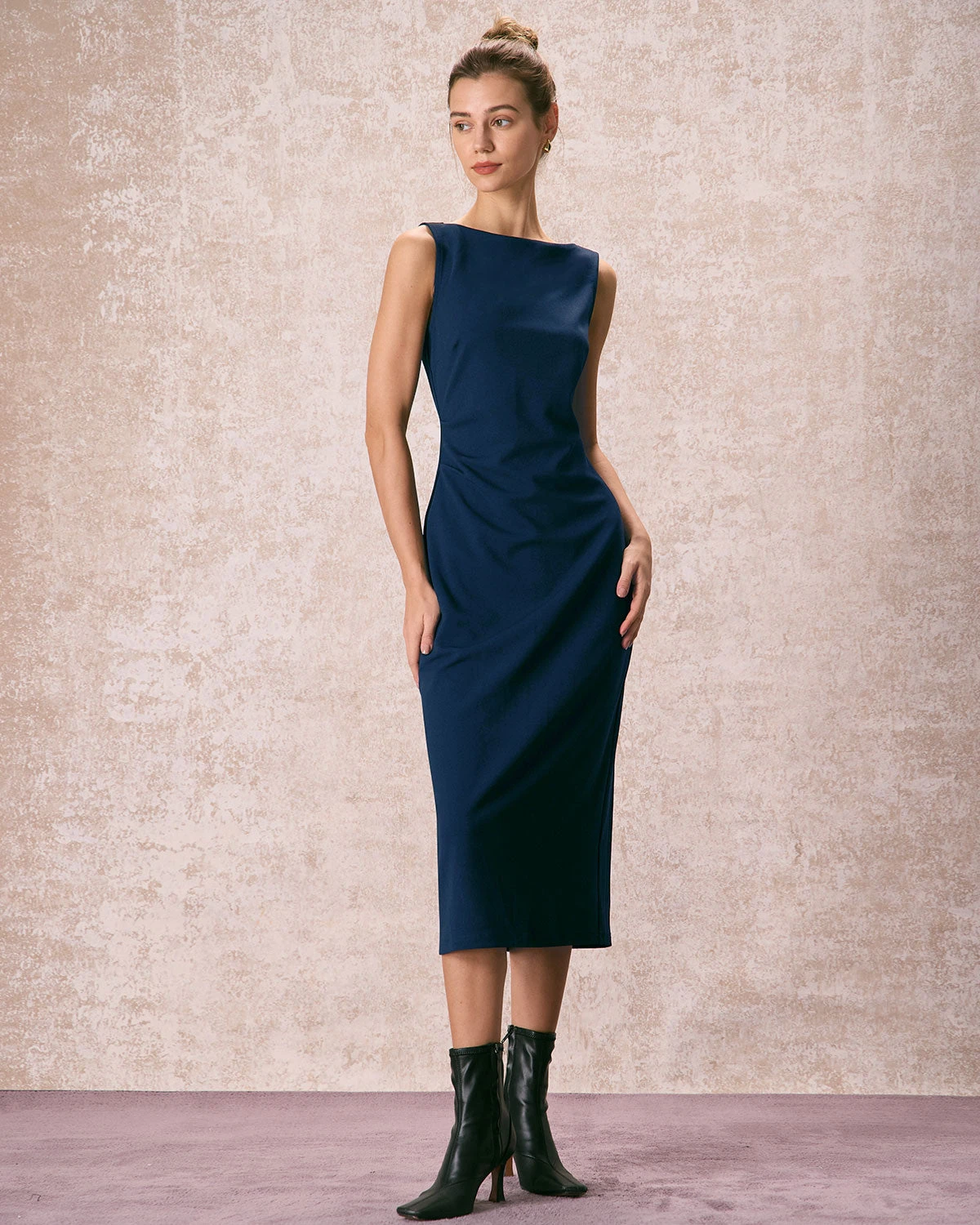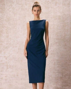 SKU: CMLOB 8280280006869 Categories: Blue Dresses, Shop by Color & Fabric Tags: Boat Neck, Ruched, Sheath, Sheath Dresses