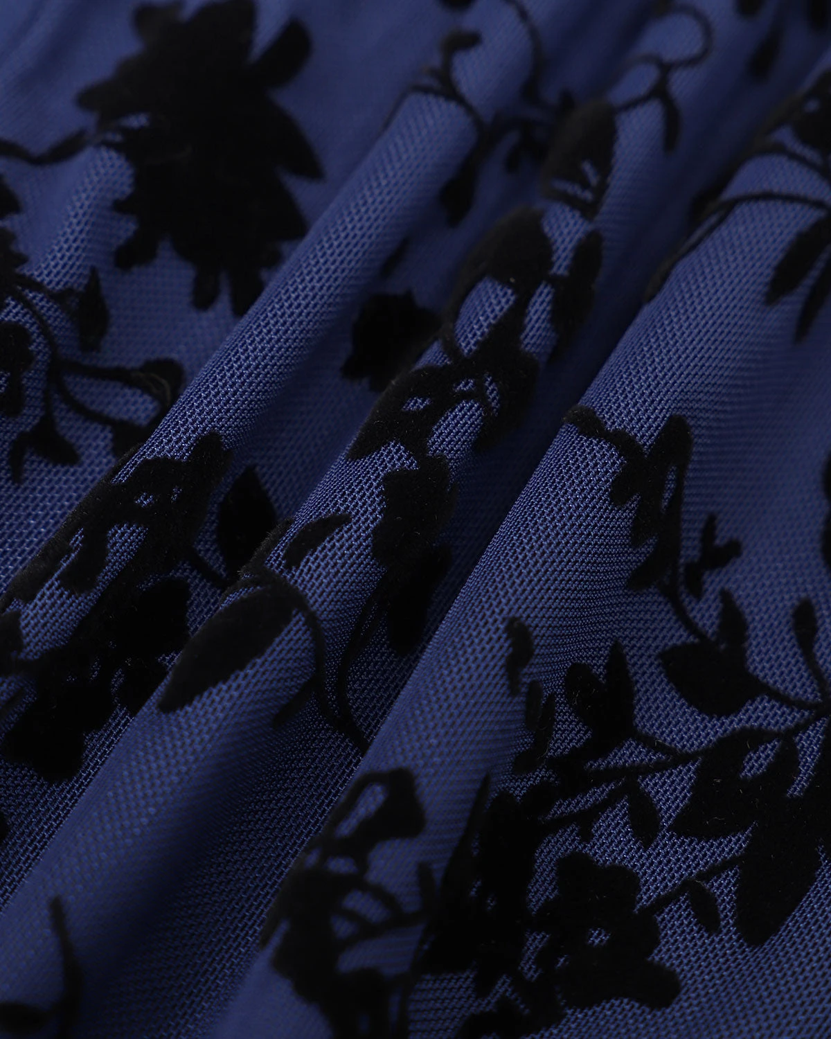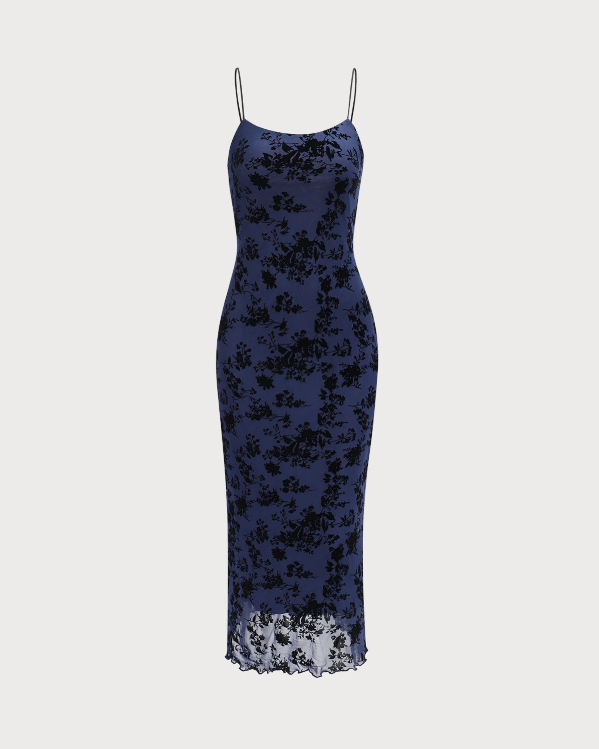 The Navy Floral Flocked Mesh Slip Maxi Dress