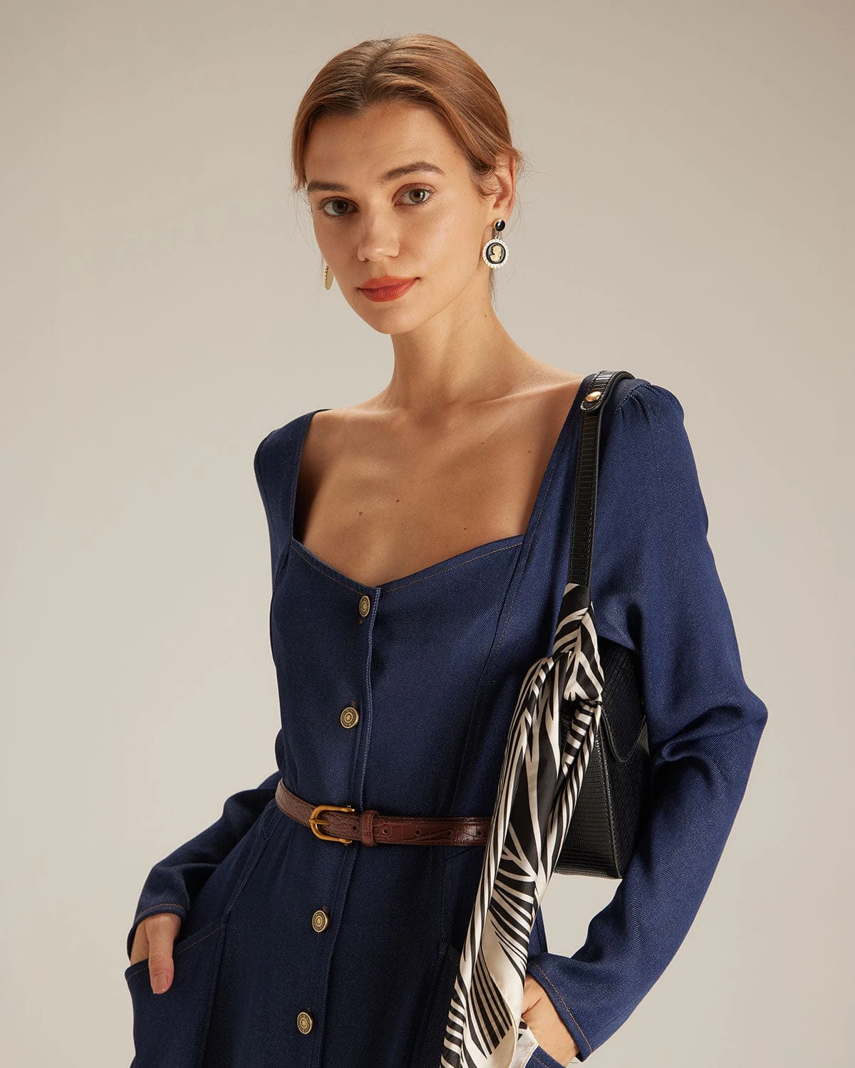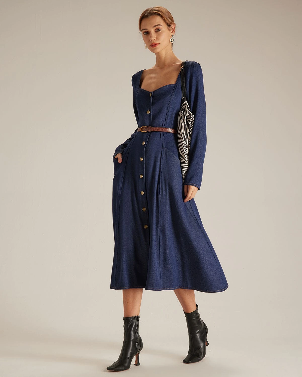 This Long Sleeve Midi Dress is a perfect choice for any occasion. The long sleeve, sweetheart neck and swing design of the dress adds movement and flow, making it easy to wear. The pockets, A-Line and single-breasted detail adds a feminine touch and makes this dress perfect for any occasion. Whether you’re going out on a date or attending a formal event, this dress is sure to turn heads and make you feel fabulous.