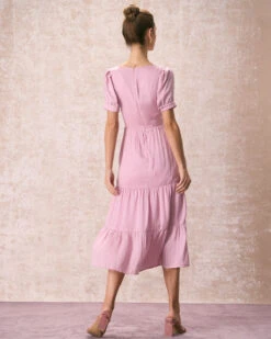 This Ruched Midi Dress is made of Polyester and Spandex. Polyester is an artificial fiber that feels soft, looks lustrous, and dries fast. It’s also durable, with good resistance to wrinkles, stains, and sunlight.