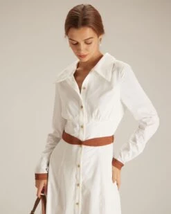 The White Colorblock Belted Shirt Midi Dress